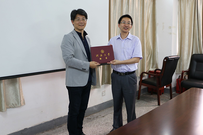 6月22日,台湾成功大学陆定邦教授受聘为河海大学兼职教授,机电工程学院副院长(主持工作)丁坤向陆定邦教授颁发了聘书。