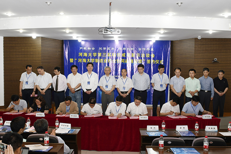 5月19日上午,河海大学在常州校区举行第三届科技成果展示洽谈会暨“河海大学制造业校企协同战略联盟”签约仪式。常州市科技局等政府部门的负责人,河海大学党委常委、总会计师张兵教授,常州校区管委会主任范新南教授,常州校区相关部门负责人,来自江苏省120余家加盟企业代表和师生代表共200余人参加了活动。