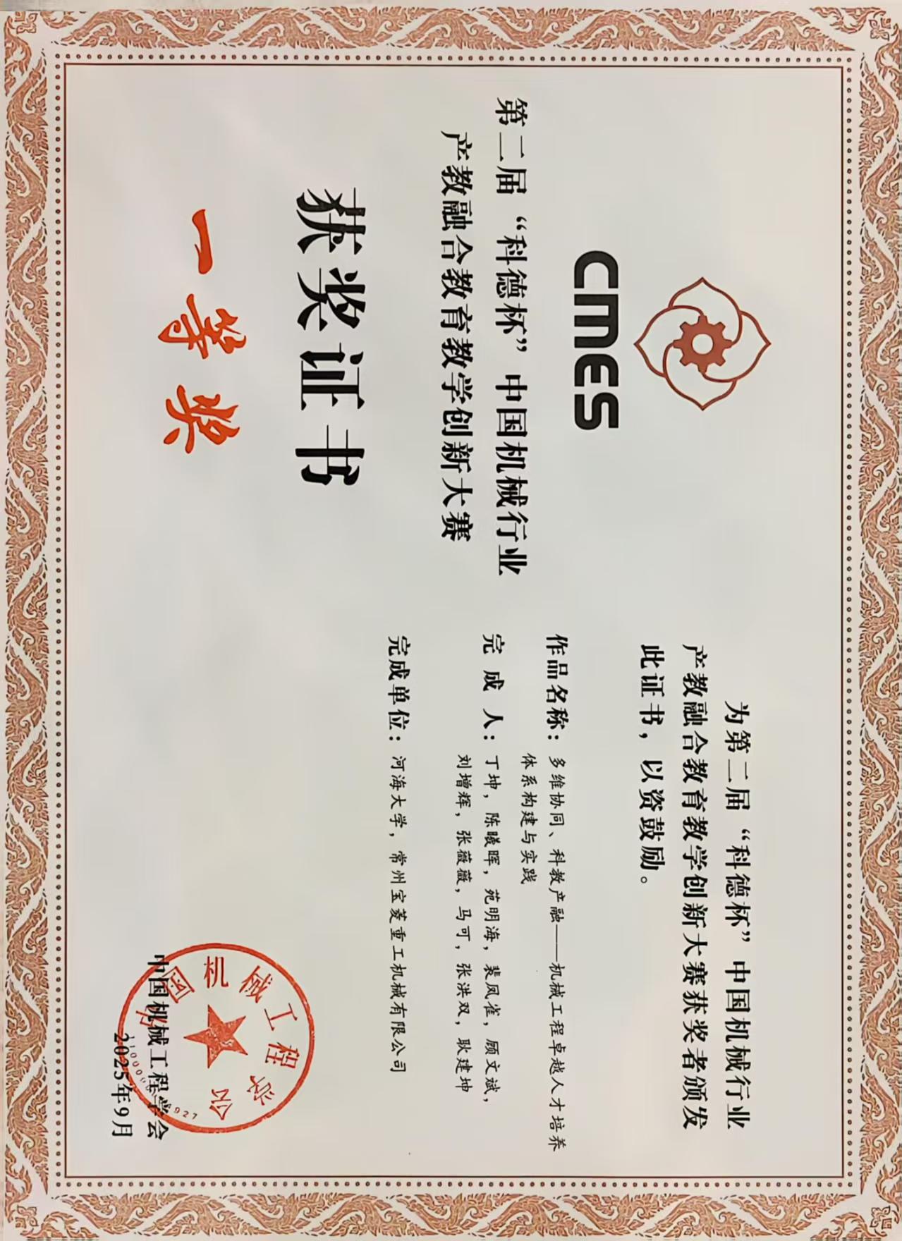 科德杯中国机械行业产教融合教育教学创新大赛一等奖