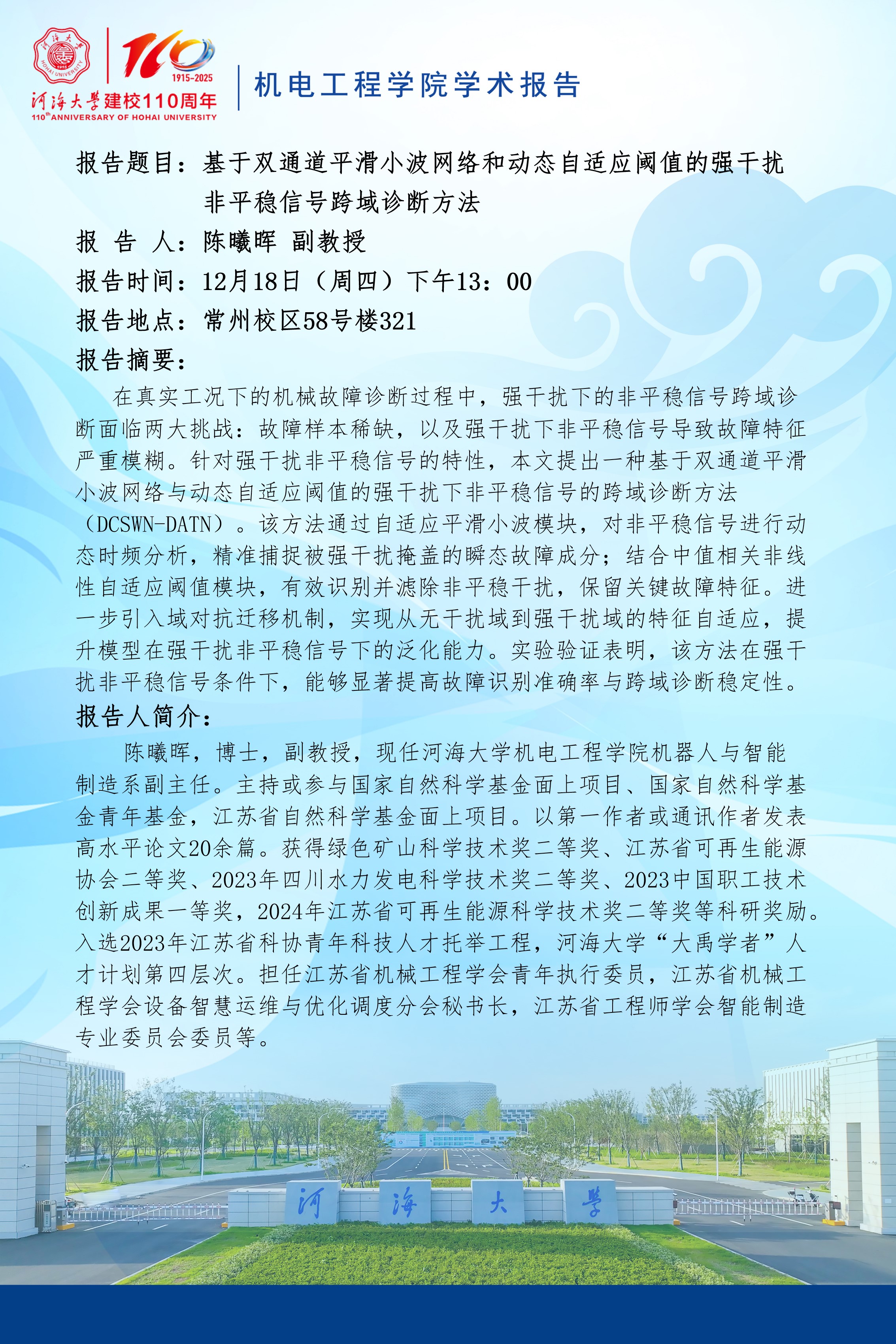 学术报告:基于双通道平滑小波网络和动态自适应阈值的强干扰非平稳信号跨域诊断方法
