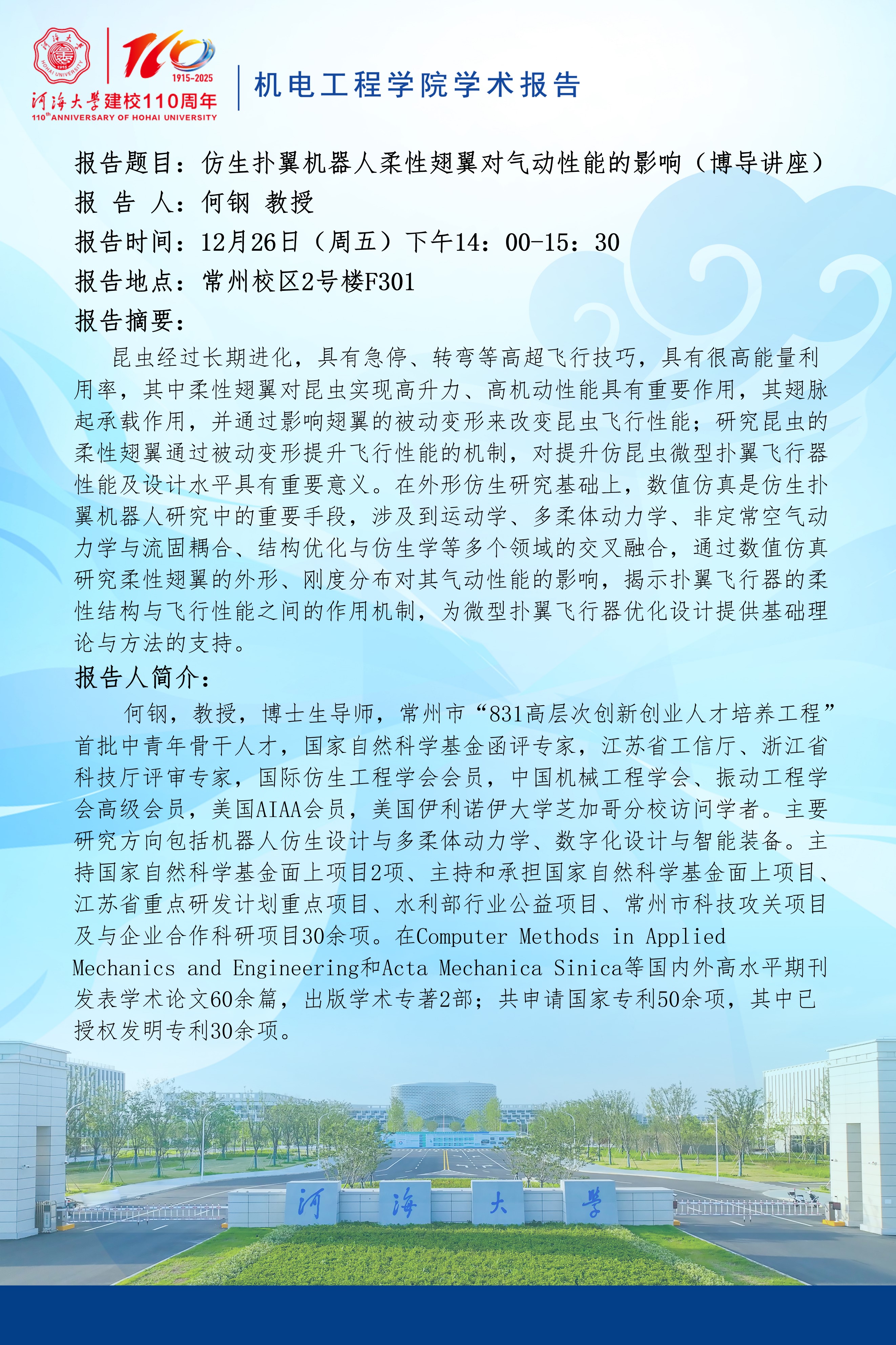 学术报告:仿生扑翼机器人柔性翅翼对气动性能的影响