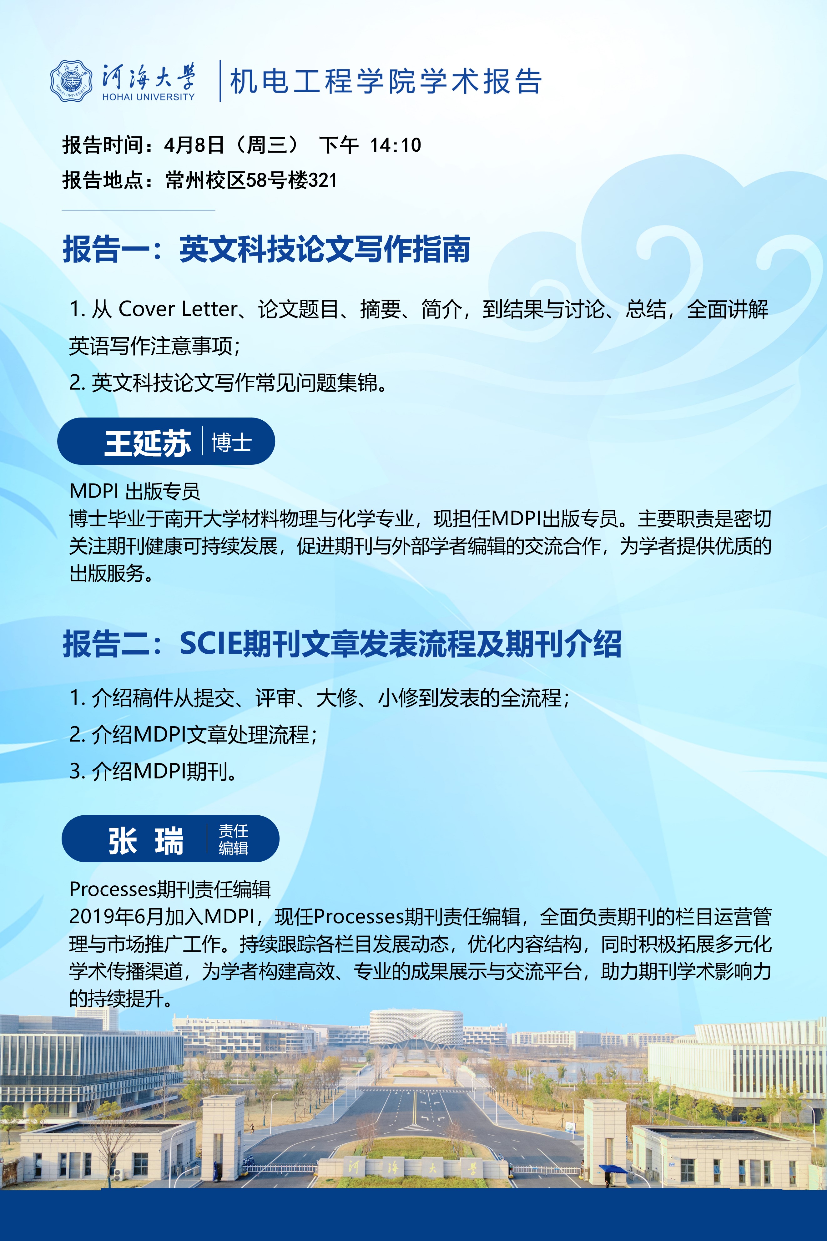 学术报告:英文科技论文写作指南;SCIE期刊文章发表流程及期刊介绍